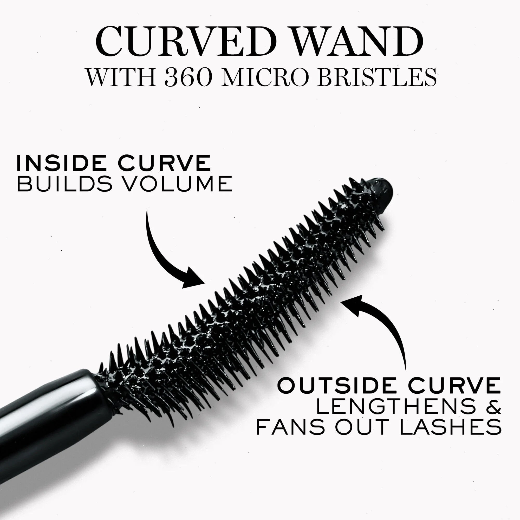 WHAT IT IS: A lash lift mascara that volumizes every single lash for instant lash lift, length, and feathery, fanned-out volume with no clumps. WHAT IT DOES: Our lash lift mascara features a curved mascara wand that instantly lifts & fans out lashes for an open-eye effect that lasts up to 24H. The 360 micro-bristles grab every lash from root to tip (no matter the length) for longer eyelashes without the clumps. The lightweight gel formula won’t weigh on lashes, leaving them feathery soft with no flaking or smudging all day. ABOUT THE WAND: The dual sided elastomer mascara wand is uniquely designed to volumize, lift & lengthen lashes. The inside curve builds volume while the outside curve instantly lifts and lengthens lashes.